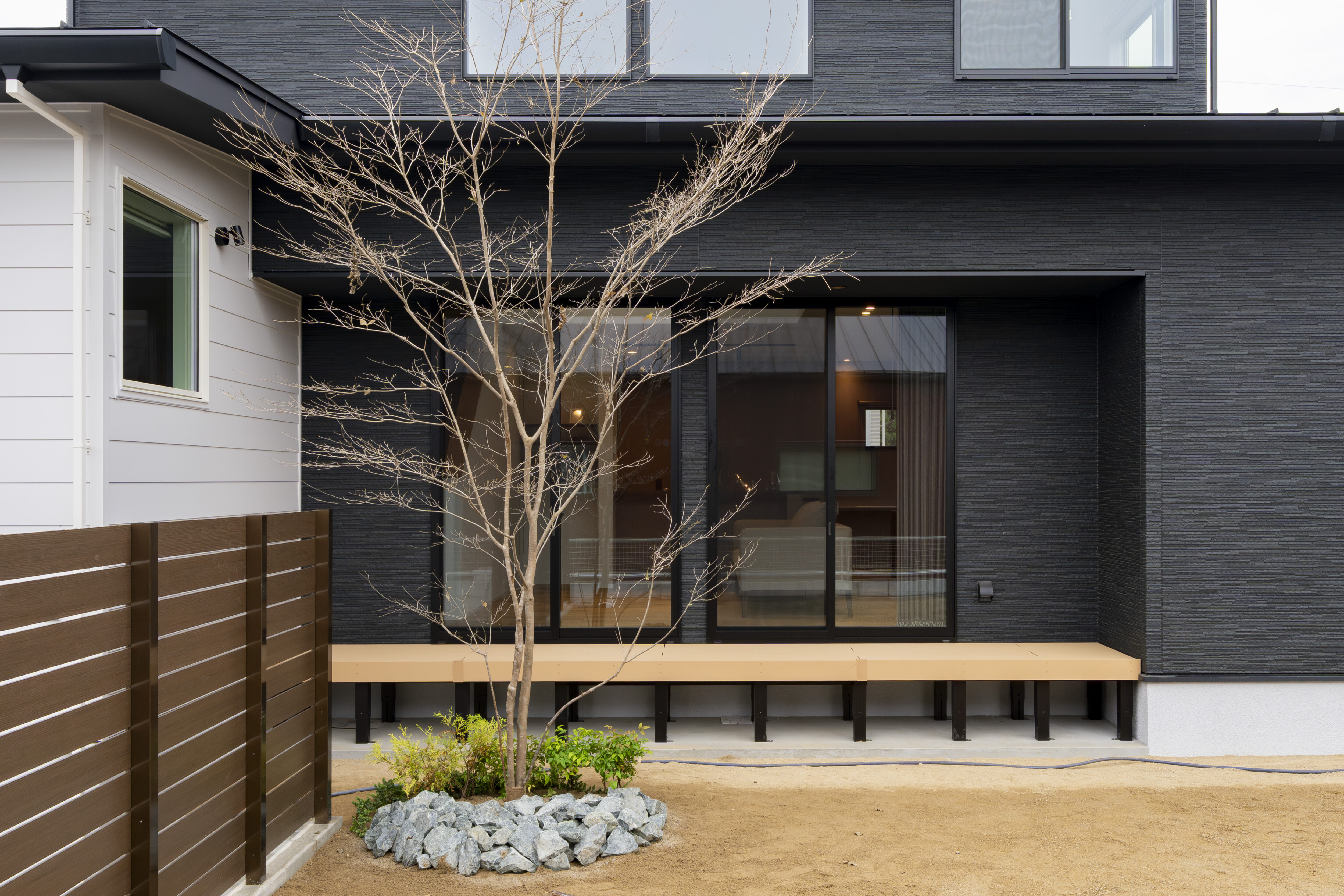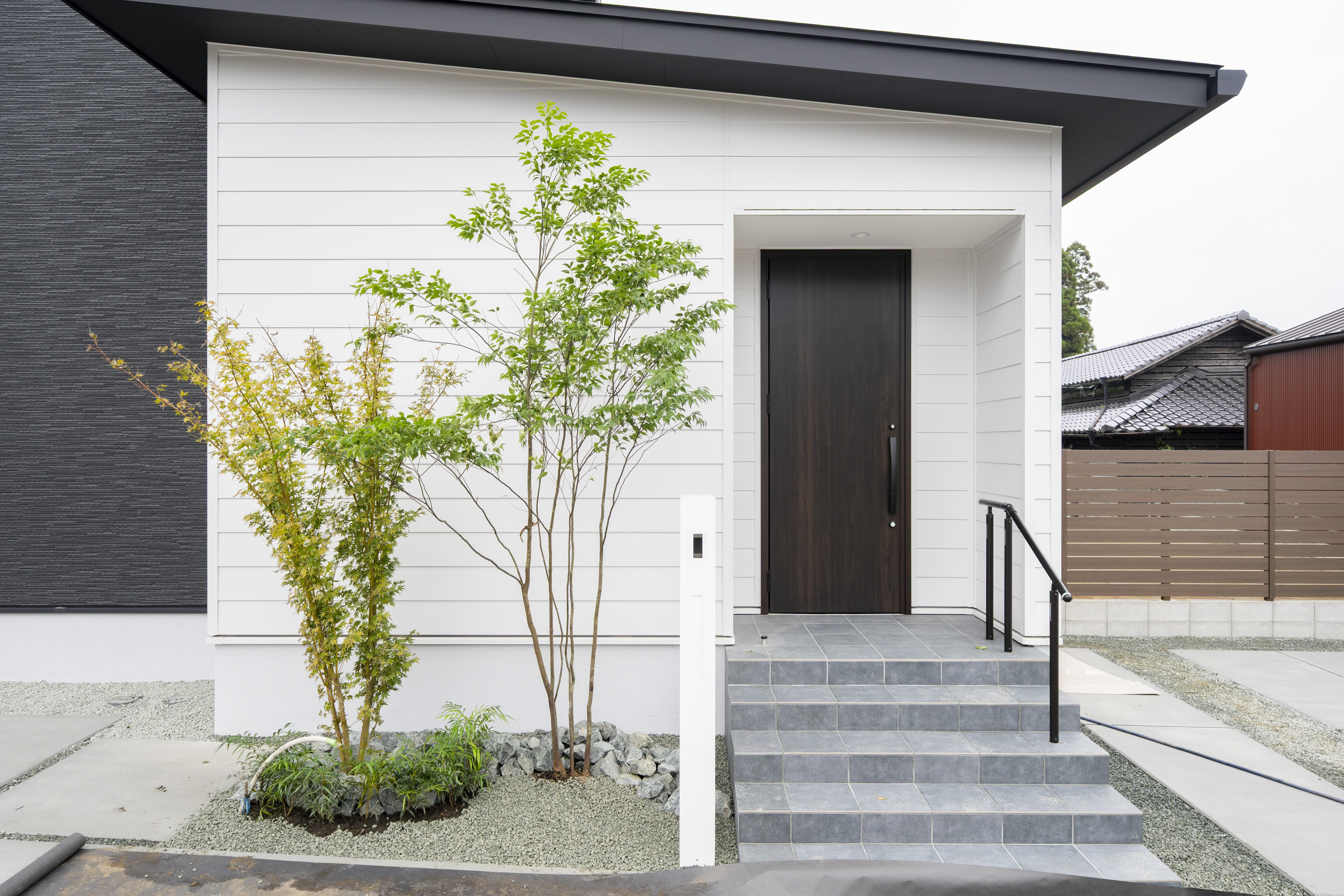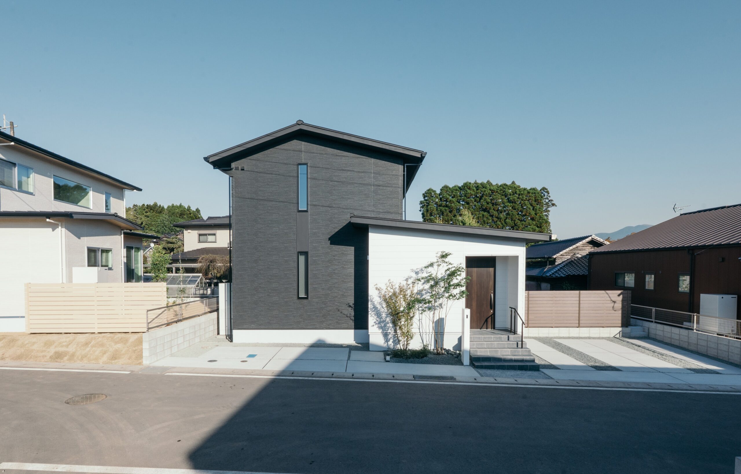 外觀設計利用極簡色調與異材質交錯,在融入周邊景觀的同時散發出獨特的個性。
